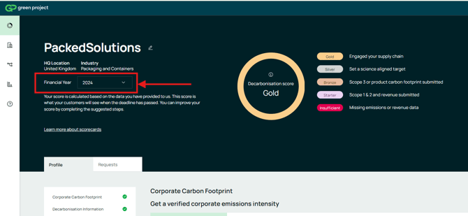 Ensure you are accessing your profile in the correct financial year. If you're not, here's how you can add a reporting year:- Provide the end date for your most recently completed financial year.