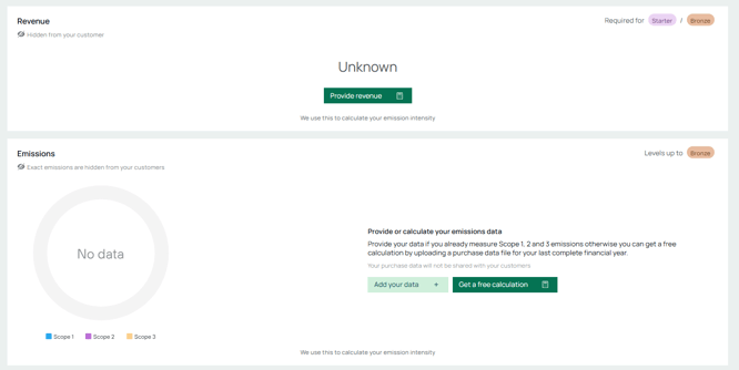 Green Project automatically calculates Scopes 1, 2, and 3 once you upload your purchase data and basic operational details.