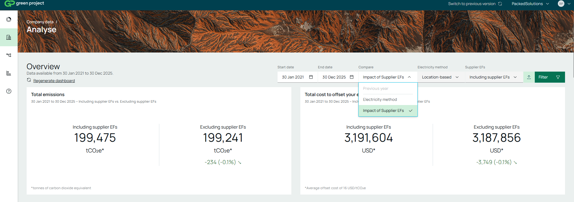 Supplier-Specific Data: Include or exclude supplier emission factors to see the difference they make.