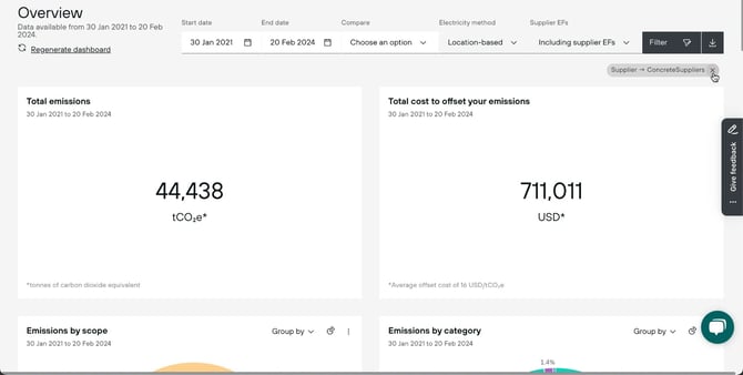 - All other charts or tables automatically update to show only data related to that selection (e.g., a specific scope or facility).