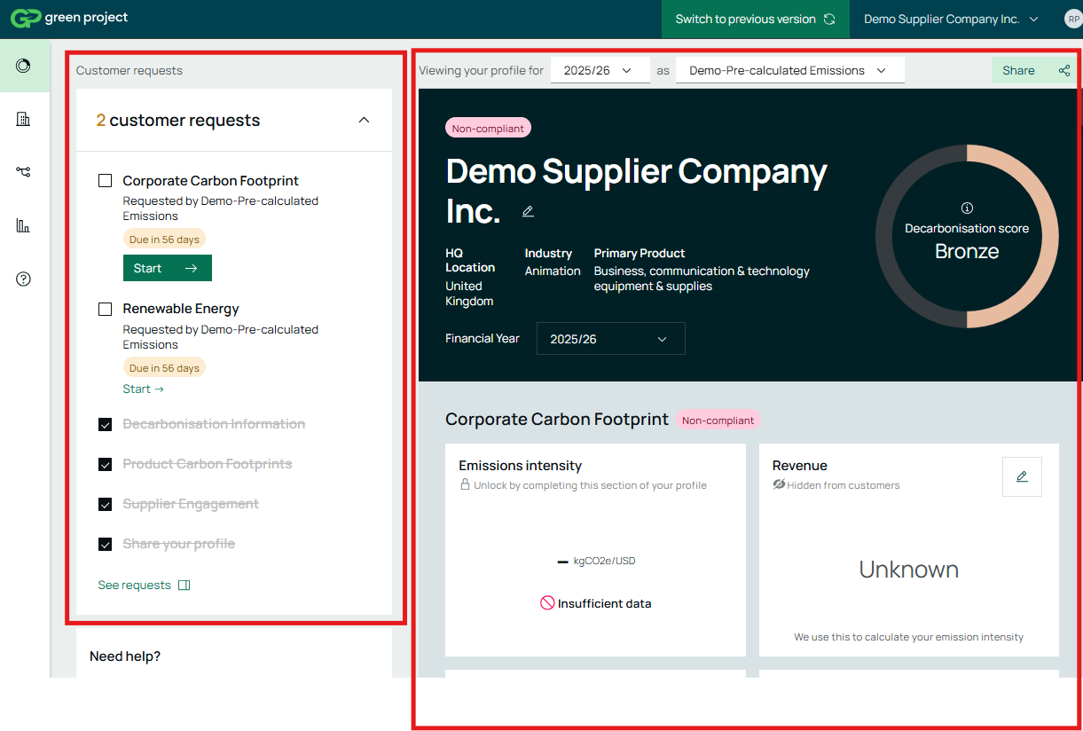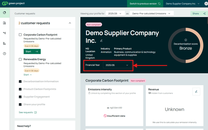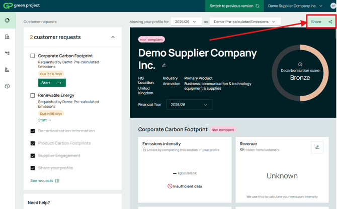 Your supplier profile is your central hub for sharing environmental data with your customers. It brings together everything from your carbon footprint to your renewable energy usage in one place, so your customers can see exactly where you stand.