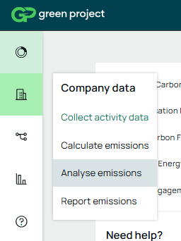 - Navigate to Company Data -> Analyse Emissions in the top left sidebar